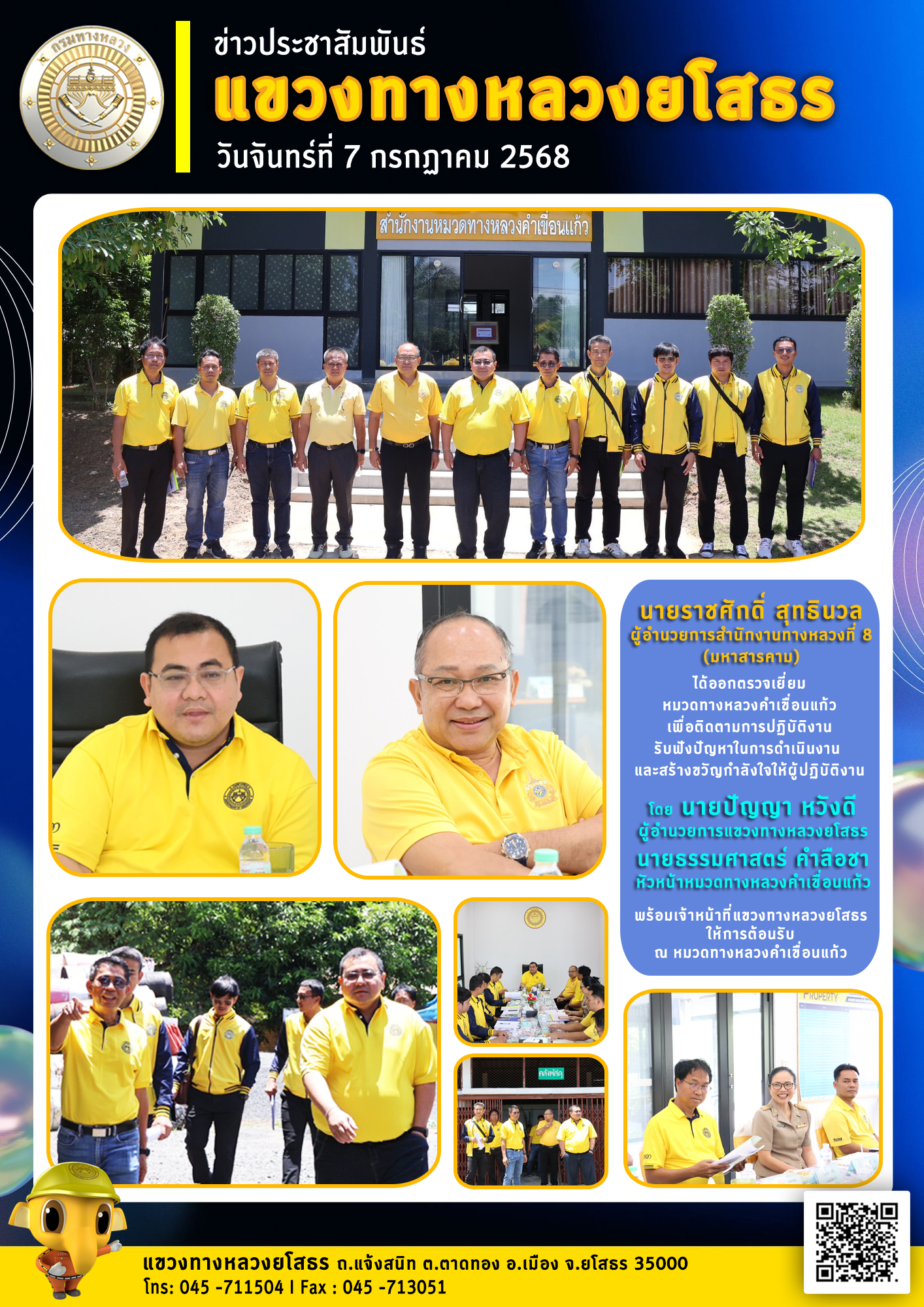 โดย นายปัญญา หวังดี ผู้อำนวยการแชวงทางหลวงยโสธร