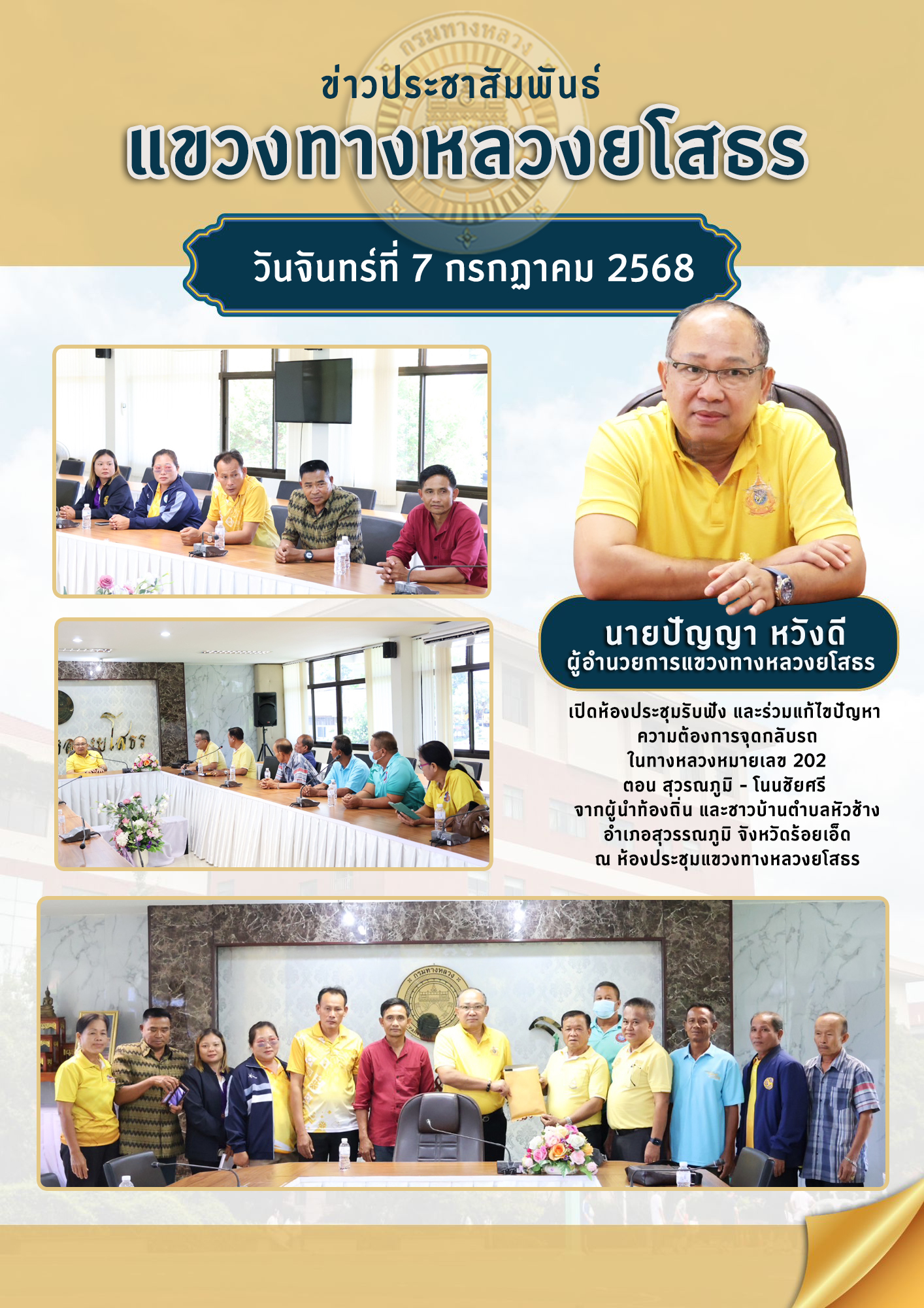 อำเภอสุวรรณภูมิ จังหวัดร้อยเอ็ด ณ ห้องประชุมแขวงทางหลวงยโสธร